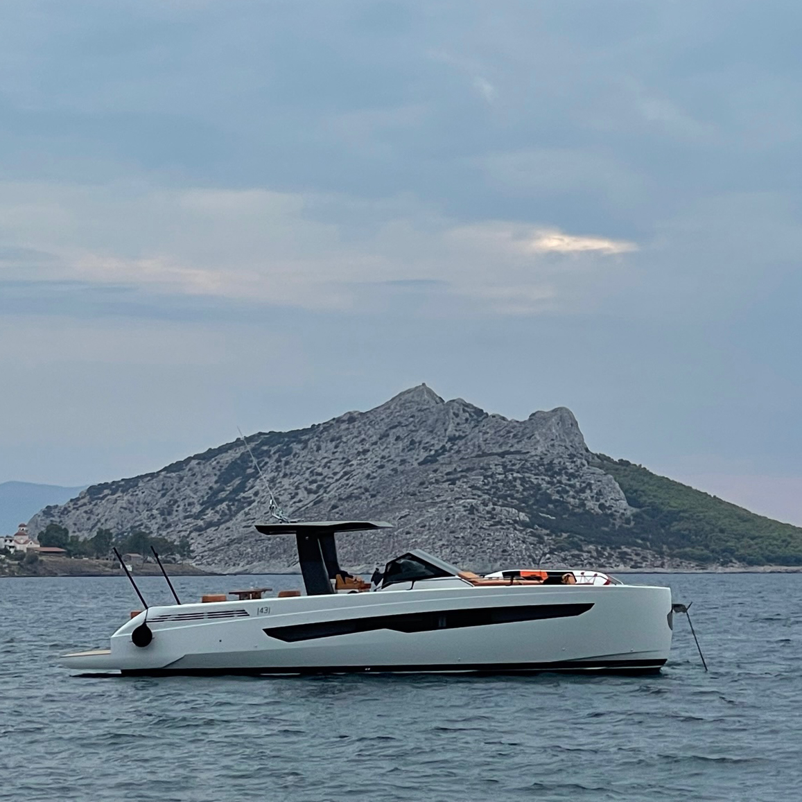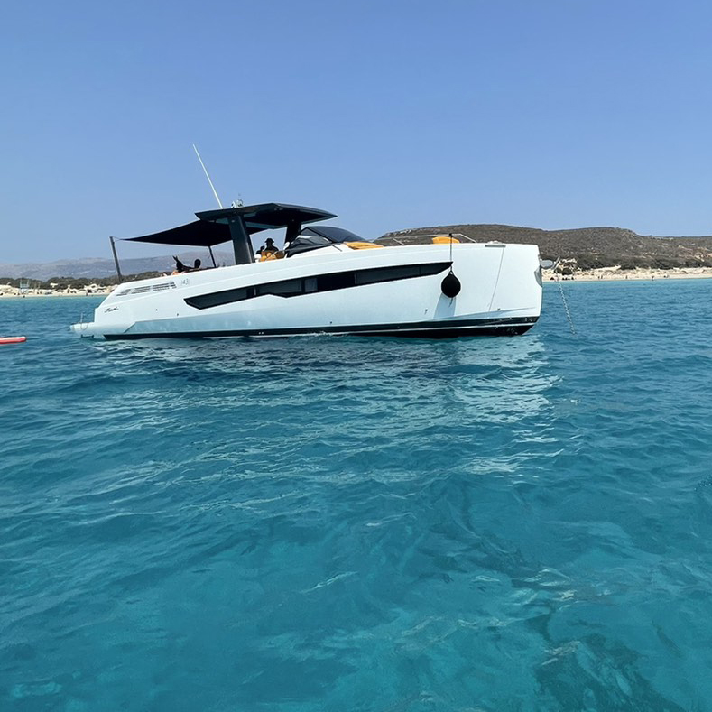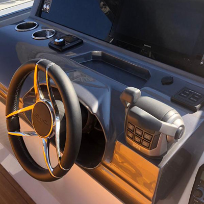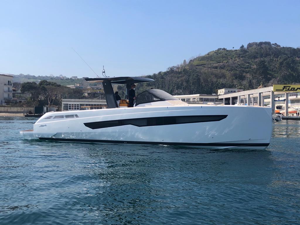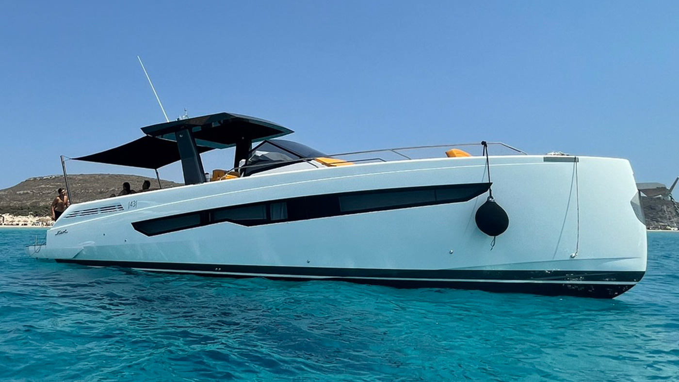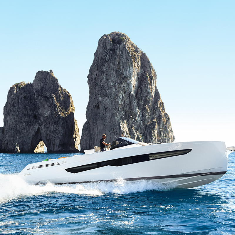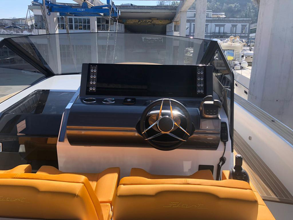 Fiart / 43 / Seawalker has been conceived for stable and powerful navigation through the most up-to-date CFD systems. The water lines and hull are optimized to interact with Volvo IPS propulsion systems and the low center of gravity makes the boat stable both at sea and at anchor. In reality, driving it will be a unique experience.
