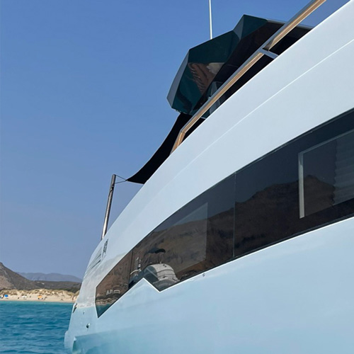 We choose to give a greater sense of protection in the Sw43 cockpit, the sides height is in fact 60 cm in the working area, a height that complies with current regulations and therefore does not require the presence of a handrail.